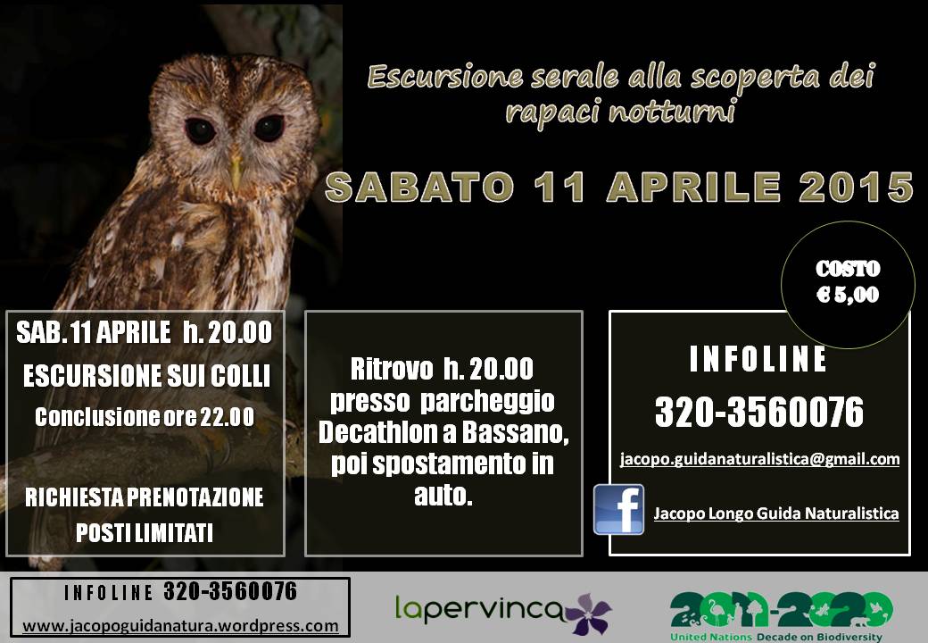 sabato 11 aprile propongo una passeggiata serale alla scoperta dei rapaci notturni. Il ritrovo sarà alle ore 20.00 al parcheggio Decathlon di Bassano. Poi ci sposteremo in auto.