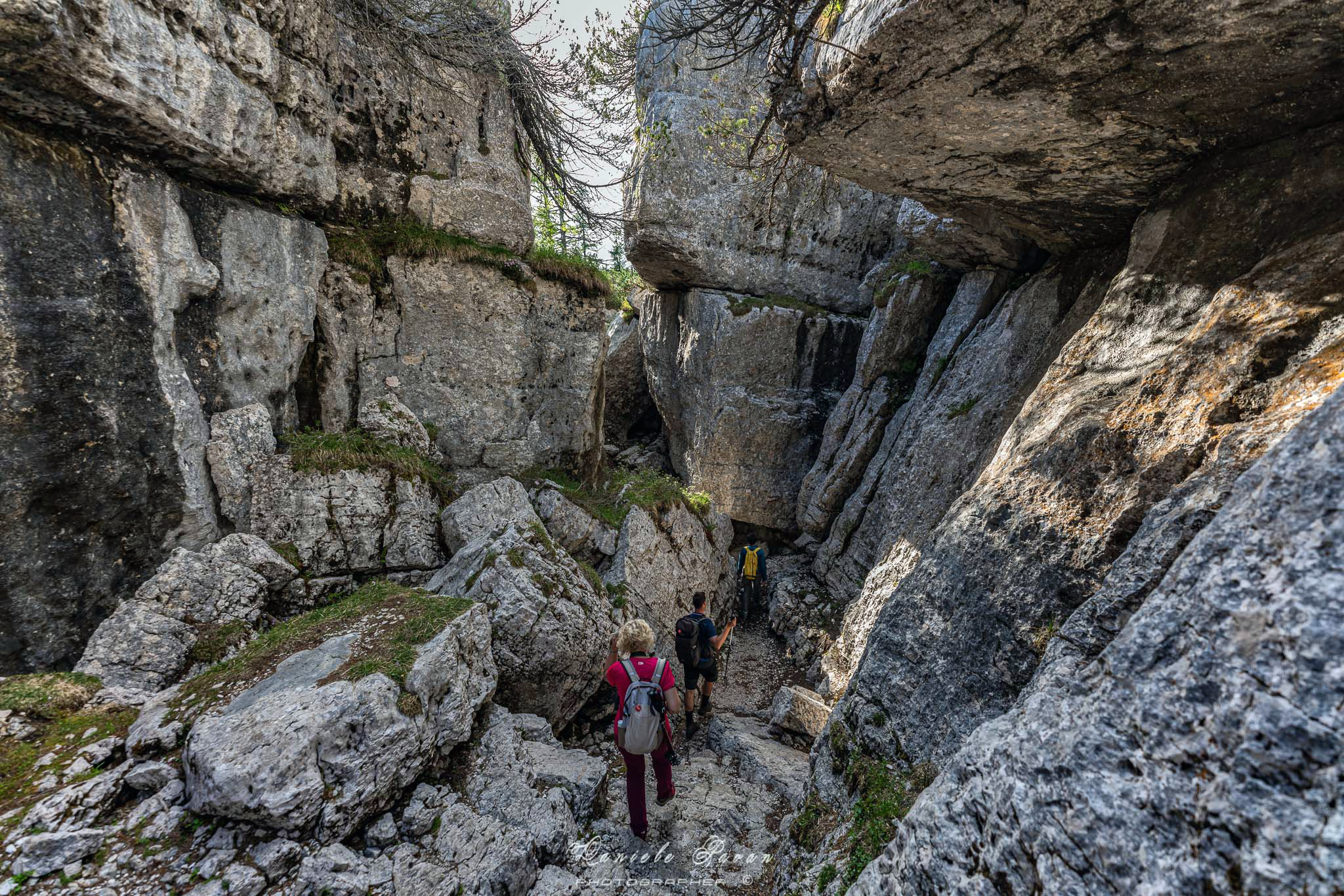 Benvenuti ai Castelloni di San Marco, il risultato stupefacente di millenni di erosione sulla roccia calcarea dell’Altopiano! Questo labirinto naturale è una meraviglia da esplorare, con grotte, fessure e canali che si aprono davanti a noi, pronti ad essere attraversati in tutta sicurezza.