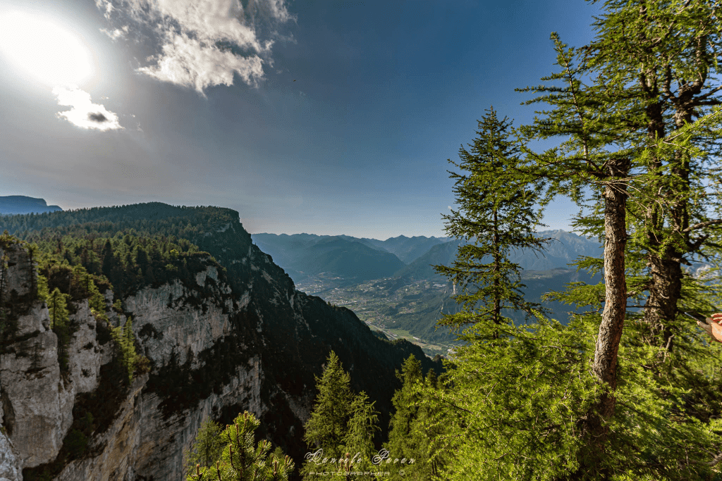 Da questo punto privilegiato, al margine dell’altopiano, potremo godere di una vista mozzafiato sulla Valsugana, che si dipana sotto di noi con un’imponente parete verticale di quasi 1500 metri!