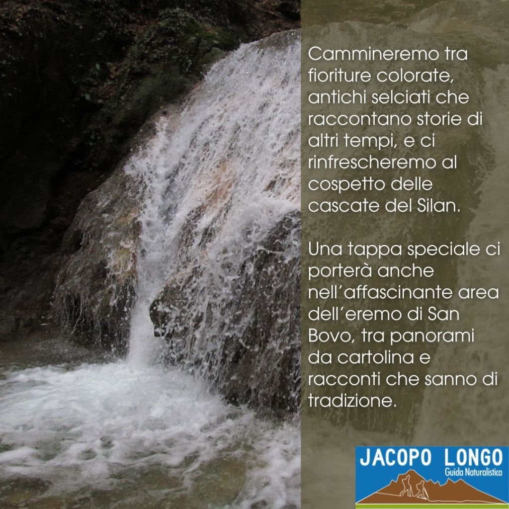 Raggiungeremo le suggestive cascate del Silan, ideali per una pausa rinfrescante, e proseguiremo fino all’affascinante area dell’eremo di San Bovo, dove il silenzio si mescola a panorami mozzafiato e racconti che profumano di tradizione.