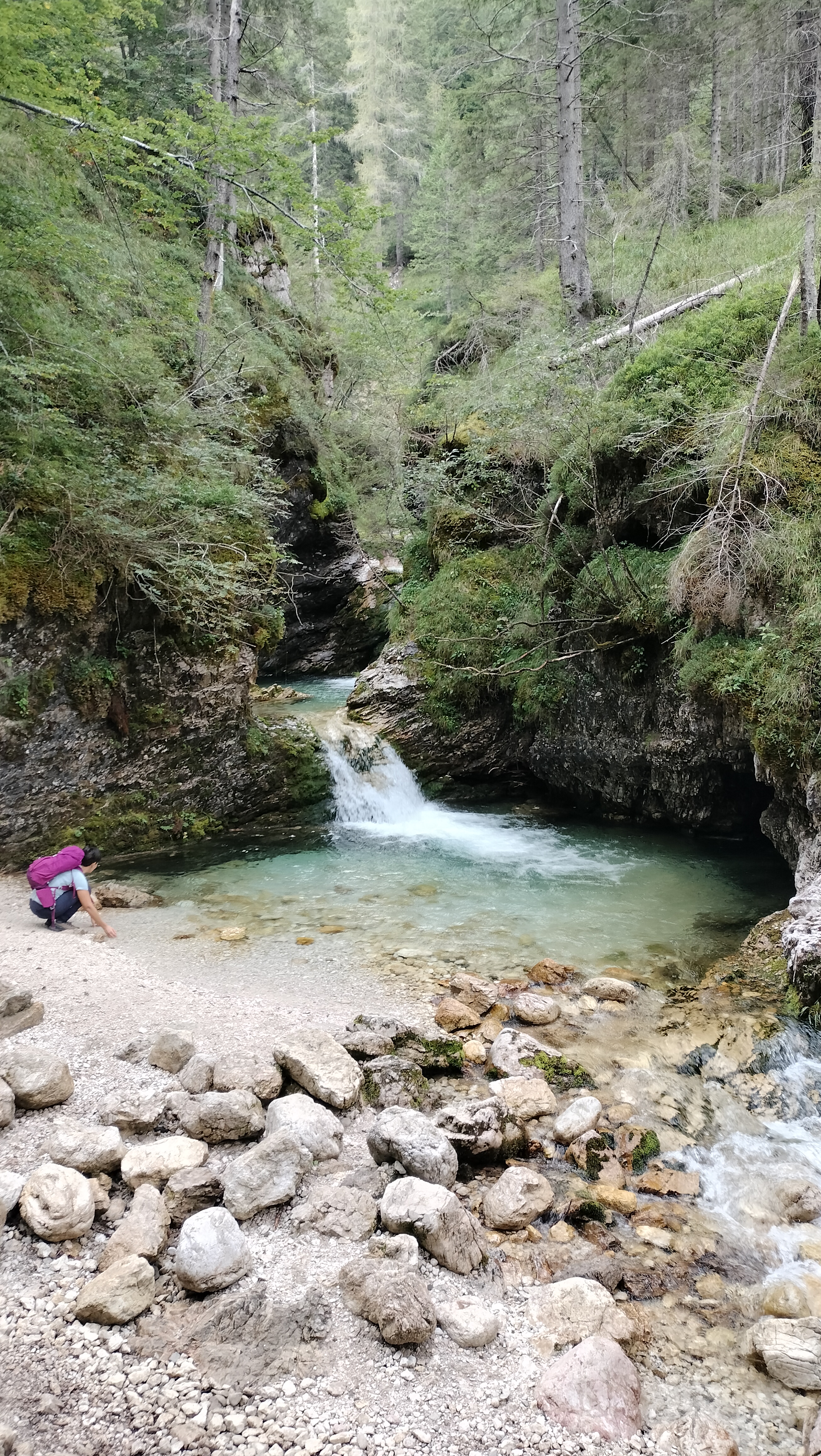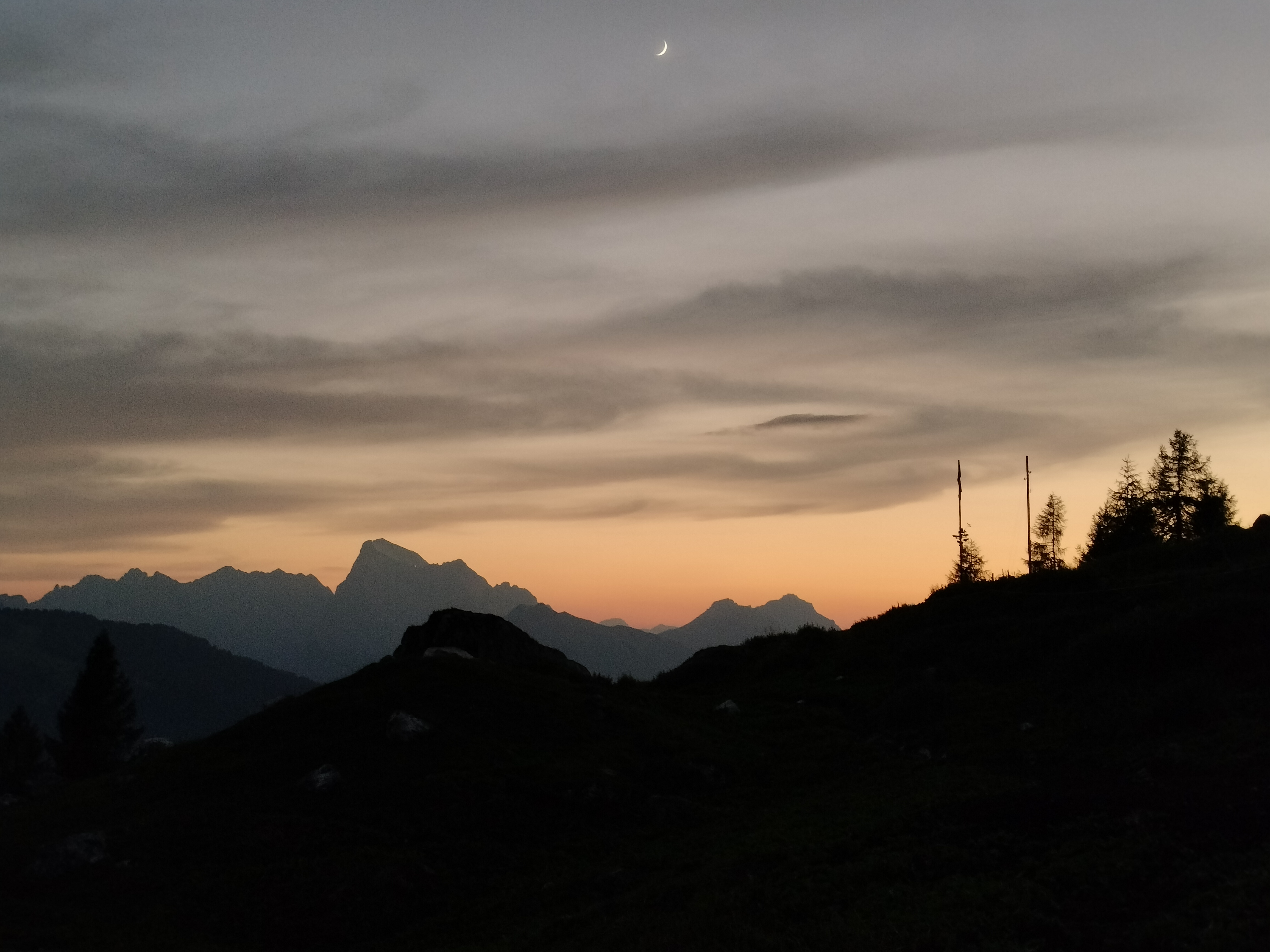 Dopo una sosta per ascoltare il suono dell’acqua e del bosco che si addormenta, riprenderemo il sentiero per raggiungere un luogo speciale: il Bàcaro di montagna, dove ci attende una gustosa cena in stile cicchetteria veneziana, servita in un ambiente semplice, autentico e accogliente, con vista sulle Dolomiti al chiaro di luna.