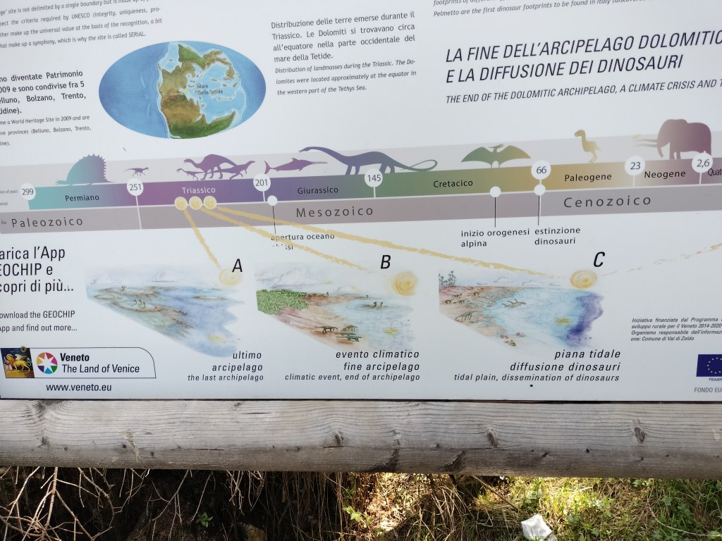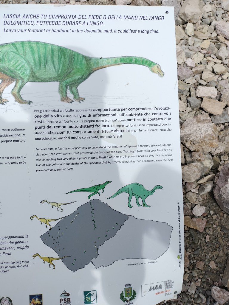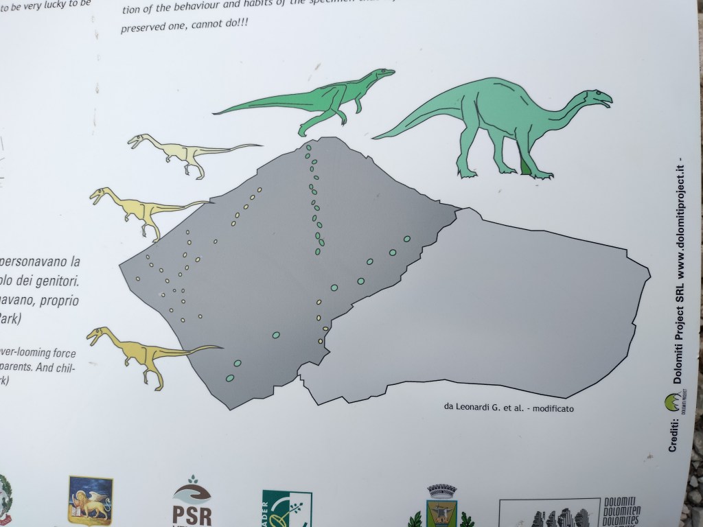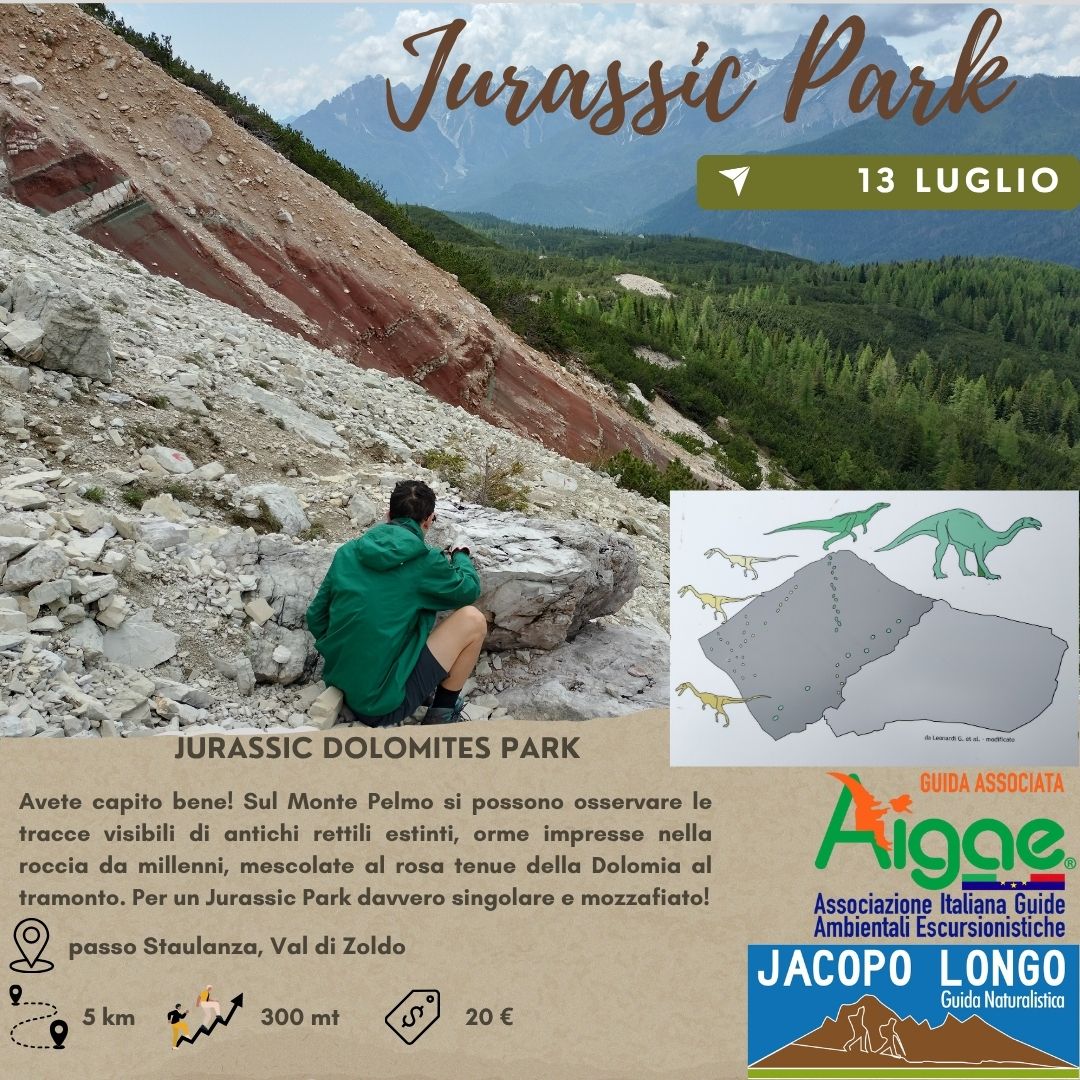 Un’escursione che è un salto indietro nel tempo, verso un’epoca in cui i dinosauri camminavano là dove oggi s’innalzano le Dolomiti.